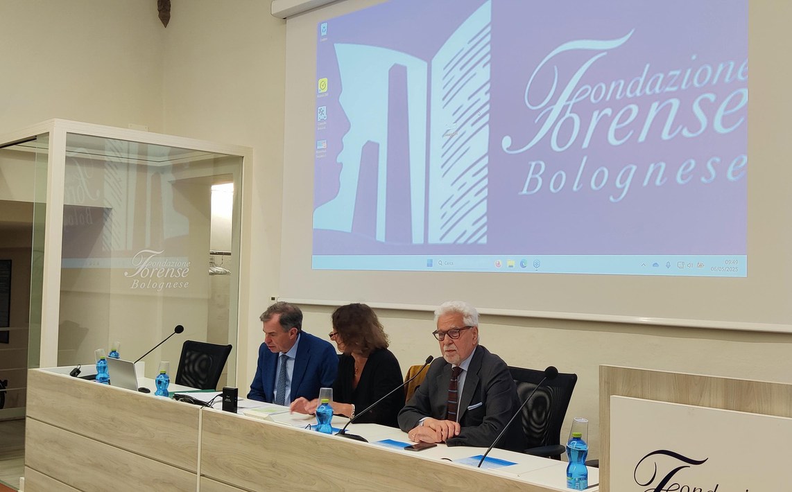 Nicola Mazzacuva, Elisabetta Italia D'Errico e Flavio Peccenin nella Fondazione Forense Bolognese (Foto di Alessandro Fratini)