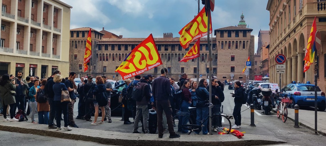 I lavoratori di Usb di fronte alla Prefettura di Bologna (foto: Alessandro Fratini)