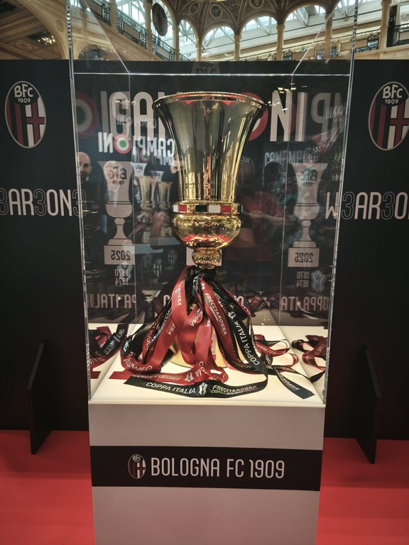 Prima di vedere il trofeo si ripercorrono i momenti più importanti della stagione del Bologna attraverso le fotografie di Maurizio Borsari. Le notti europee si mischiano a quelle di coppa Italia nella celebrazione di un’annata storica, dalle difficoltà iniziali alla vittoria con il Borussia Dortmund in Champions League. Il racconto si completa attraverso le parole dei giocatori, ai quali è affidata la cronaca emozionata dell’ultimo atto, il successo in Coppa Italia all’Olimpico contro il Milan. Il luogo scelto per esporre la Coppa non è casuale; prima di essere una biblioteca la Salaborsa ha fatto da sfondo a tante delle vicende sportive della Dotta. Nel dopoguerra, infatti, l’ex sala di contrattazione venne utilizzata anche come palasport, ospitando le partite della Virtus e degli incontri di pugilato.