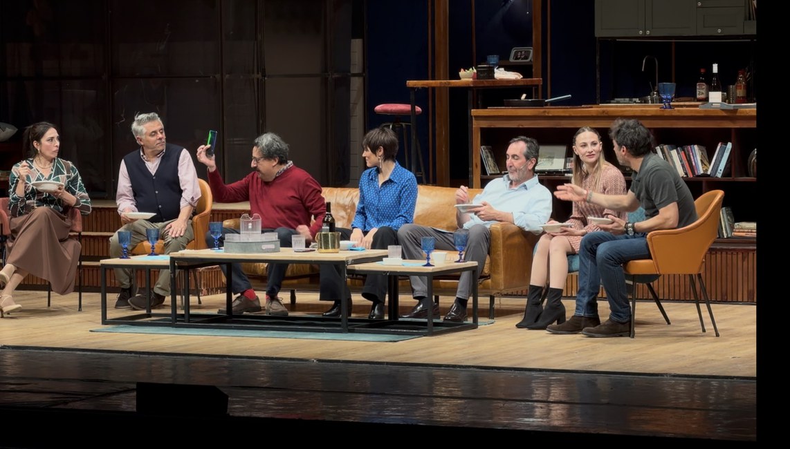 Sì, fa riflettere. Fa riflettere sulla meravigliosa diversità dell’essere umano, sulle idiosincrasie, sui pregiudizi, sulle mezze verità e su qualche bugia imperdonabile. Dopo il successo cinematografico, il regista Paolo Genovese firma la sua prima regia teatrale per una commedia che, dietro il sorriso e la leggerezza, nasconde il dramma della società contemporanea, schiava di un voyeurismo esasperato, di quella smania di ininterrotta reperibilità che costringe sempre più spesso a non separarsi mai da quell’appendice elettronica ormai diventata un tutt’uno con le nostre estremità superiori. La trama è ben nota. Un gruppo di amici si riunisce attorno a un tavolo per una cena uguale a tante altre. Battute, bottiglie di vino, pacche sulle spalle, sorrisoni e confidenze di comodo. Poi, la proposta di rivelare i segreti contenuti negli smartphone. “A faccia rigorosamente in su”, con suoneria al massimo e vivavoce. Si risponde a qualsiasi chiamata, a qualsiasi messaggio. E allora si svelano quelli che altri non possono essere definiti se non inevitabili e imperituri scheletri nell’armadio. Che quasi ci si chiede se, forse, una buona dose di privato, di personale e di intimo, non debba essere preservata a tutti costi. Con tutte le proprie forze. E invece no, l’amore e il sentimento oggi sembrano misurarsi contando le reaction ai post su Instagram, in un’infinita ricerca ossessiva di follower e di following, di chi è quella? chi è quello? perché non rispondi? metti le spunte blu! voglio vedere il tuo “ultimo accesso”. E ci si dispera, ci si arrovella la mente con pensieri che conducono a nient’altro che allo scontro. Cadono le maschere, l’inconfessabile si mostra in tutta la sua semplicità, la fiducia vacilla e, come se non bastasse, ci si chiude in un silenzio che allontana ancora di più. Esseri presumibilmente pensanti, che solo mezz’ora prima sembravano vivere i loro momenti migliori, si trasformano in tenere farse anestetizzate e crolla tutto, ancora volta. Crollano le certezze, ci si toglie persino il saluto, si sbattono le porte, finiscono finti amori e altrettanto finte amicizie. Rocco, interpretato da Paolo Calabresi, che, guai a dirlo, si sottopone di nascosto a sedute di psicoterapia. Il rapporto genitori/figli in perpetua crisi, qualche cliché sul sesso, sull’omosessualità repressa, si sdogana almeno il termine frocio. E il pubblico ride, ride e applaude, applaude. Tanto che viene quasi il dubbio che pochi abbiano capito qualcosa.