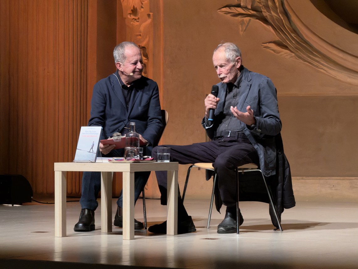 Lo scrittore Erri De Luca (a destra) in dialogo con il giornalista Claudio Cumani (foto di Paolo Pontivi)