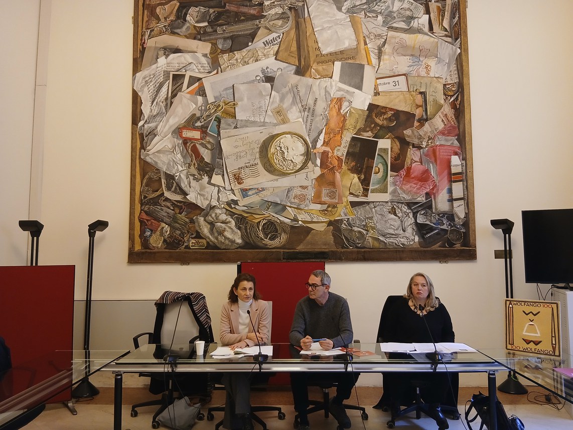 Conferenza stampa, da sx verso dx: Sonia Cavicchioli, Daniele Del Pozzo e Alighiera Peretti Poggi (foto di Giulia Goffredi)