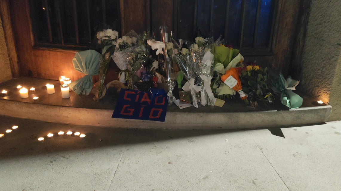 Davanti al portone del Righi fiori e lumini per Giovanni Tamburi (foto di Christian Caporaso)