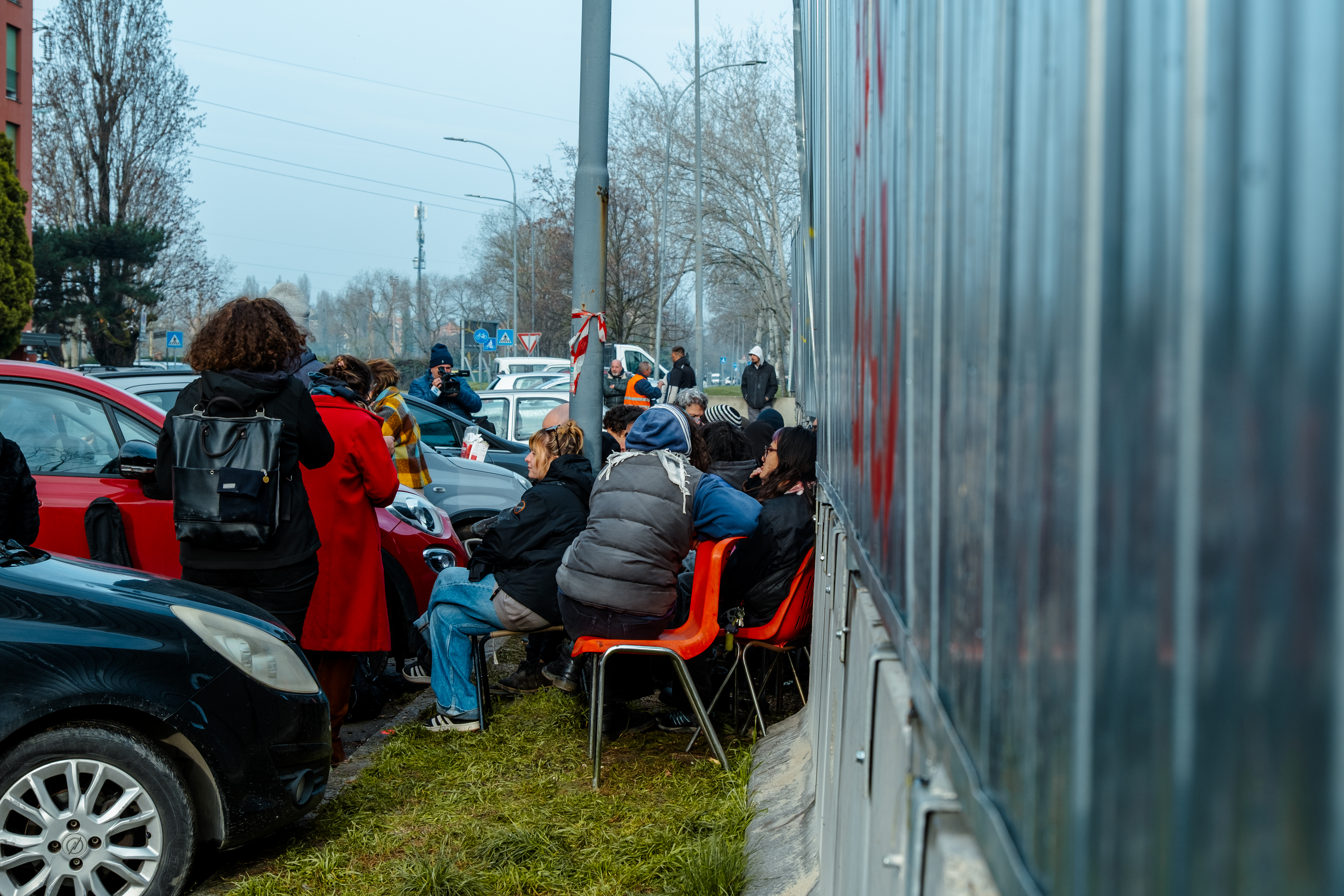 Il blocco degli attivisti di "MuBasta" davanti al cantiere (foto di Alberto Biondi)