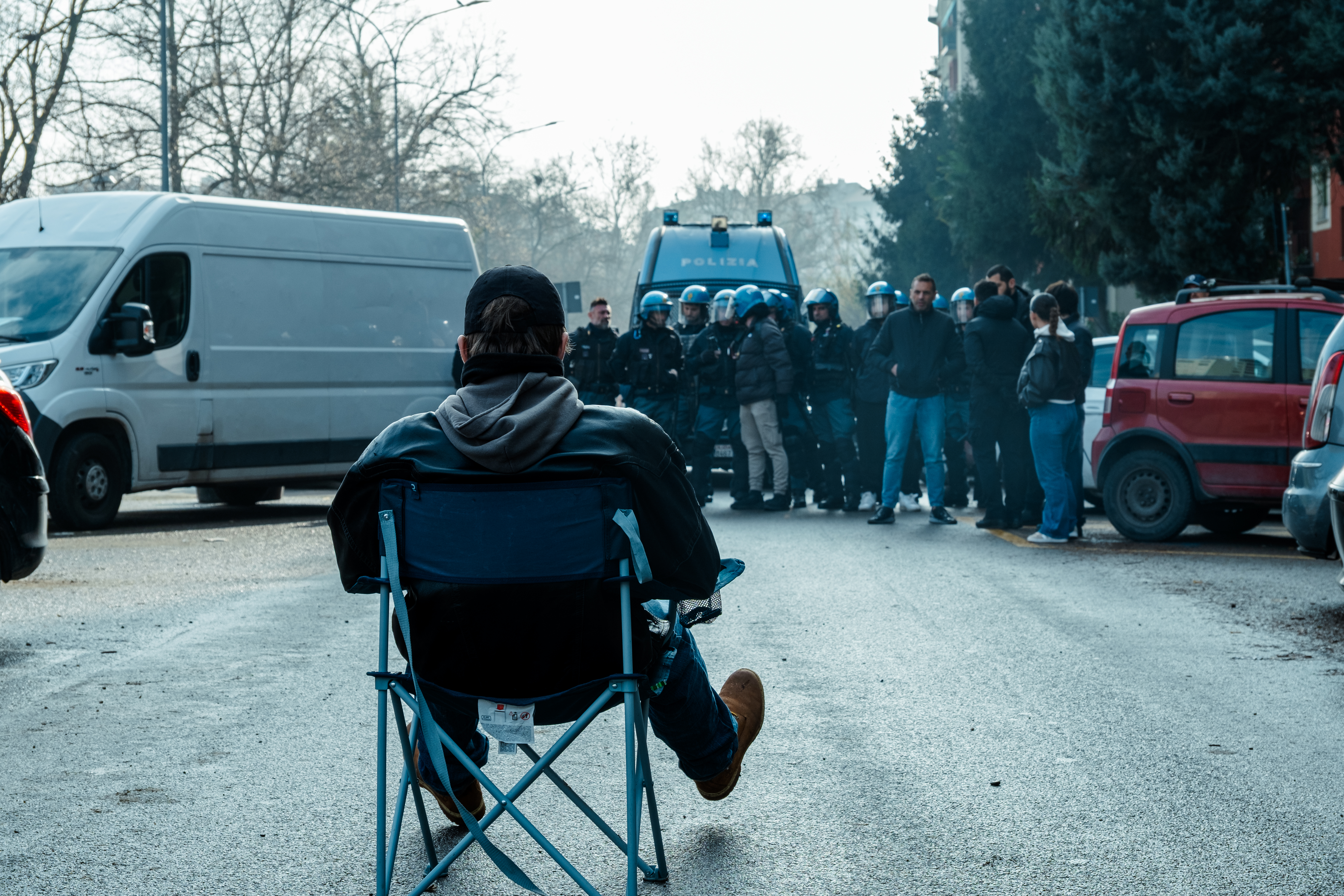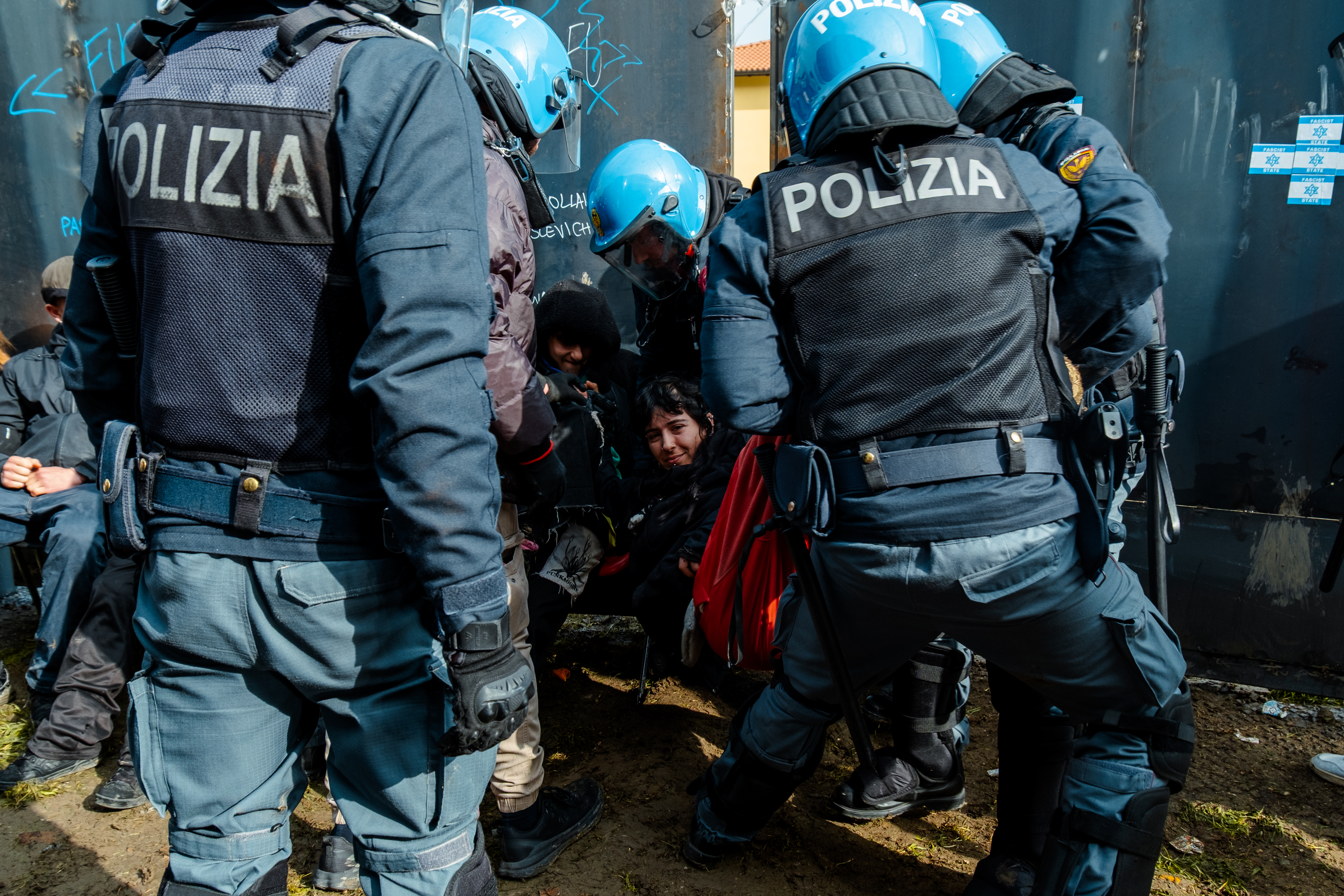 Una scena di resistenza allo sgombero (foto di Alberto Biondi)