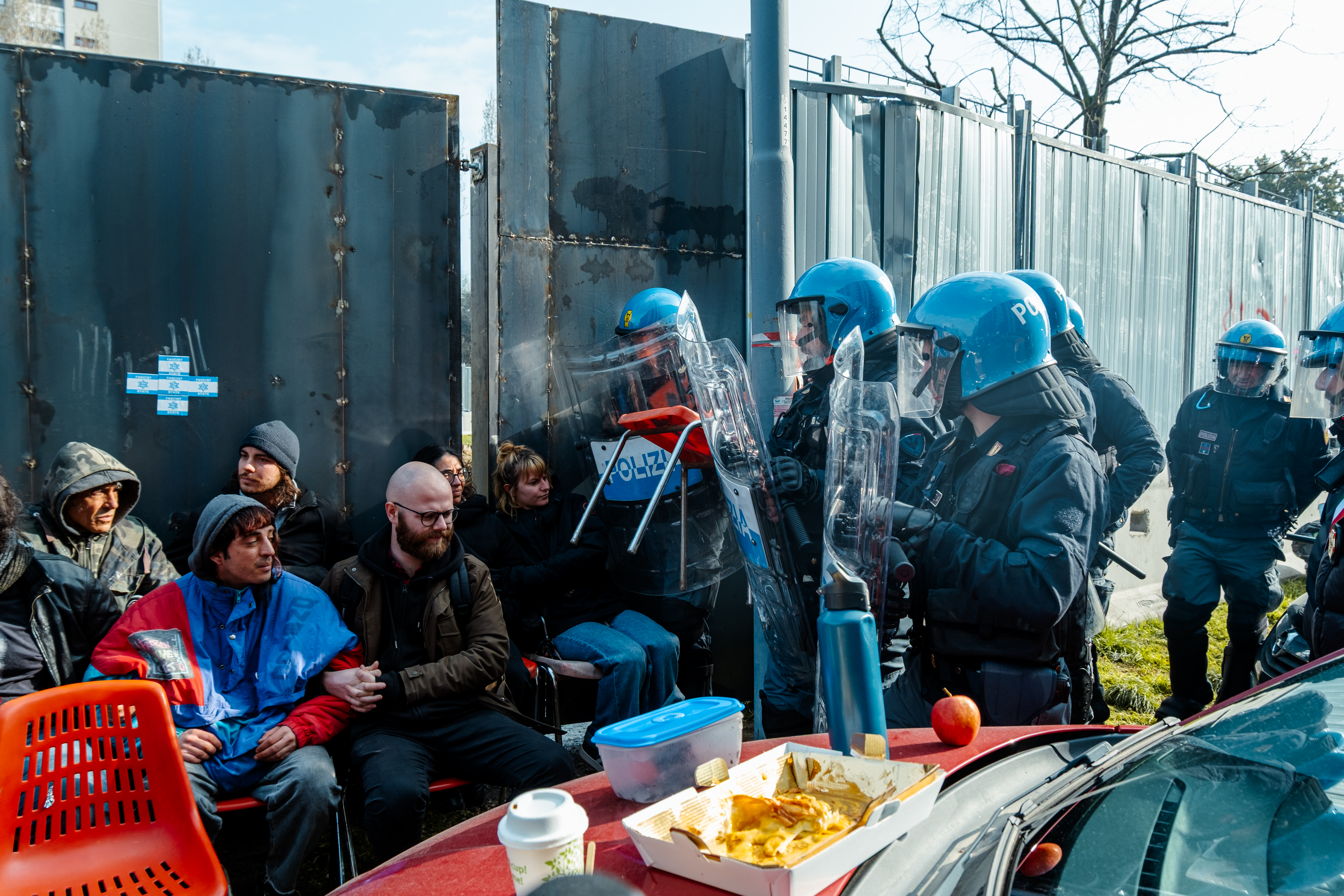Il primo confronto tra attivisti e agenti della Digos (foto di Alberto Biondi)