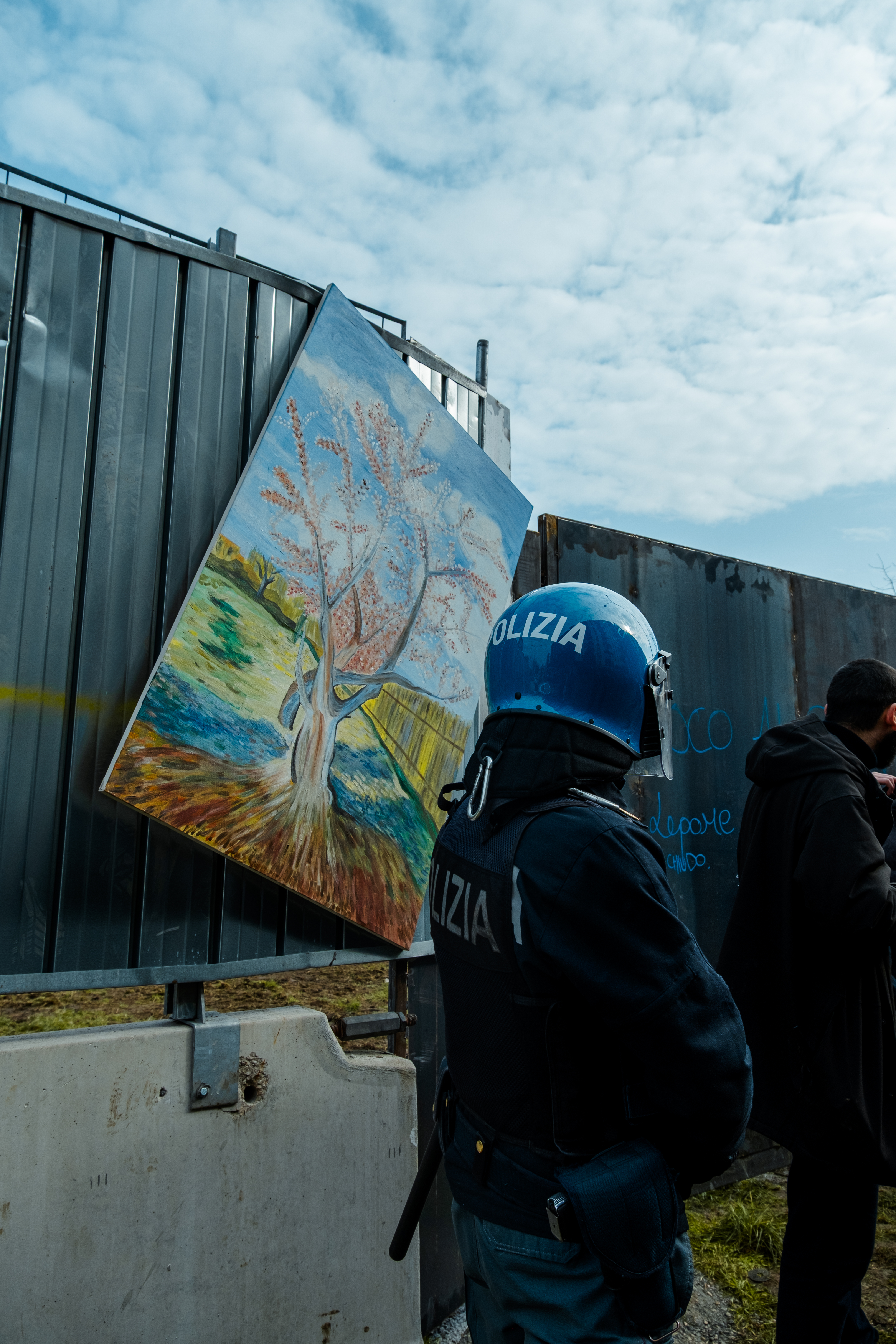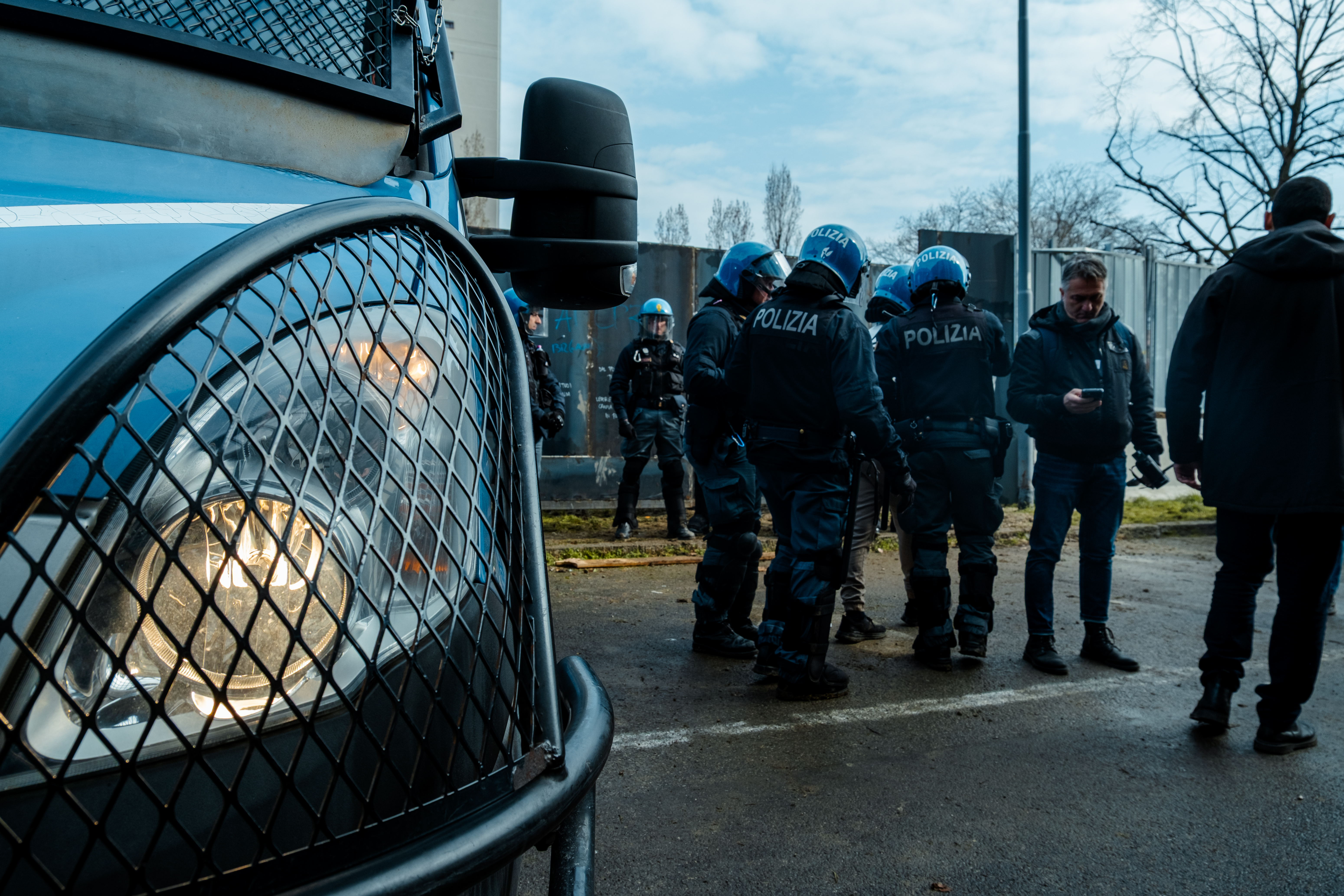 Agenti iniziano a sgomberare il presidio (foto di Alberto Biondi)
