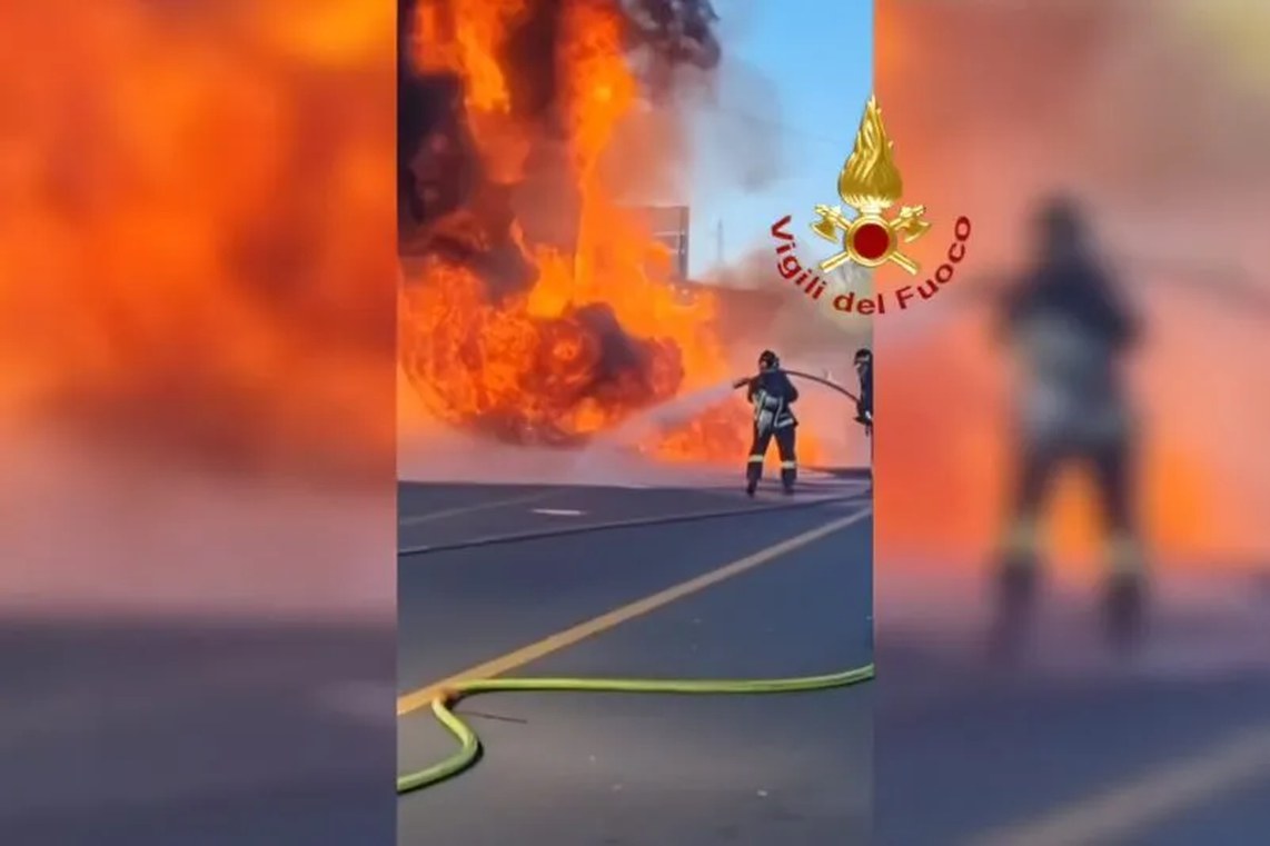 Due vigili del fuoco domano le fiamme (screenshot tratto da un video dei vigili del fuoco)