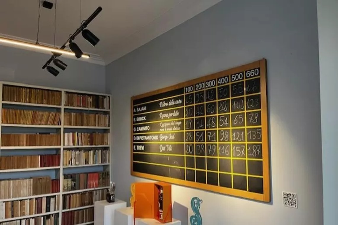 La famosa lavagna delle votazioni del premio (foto Ansa)