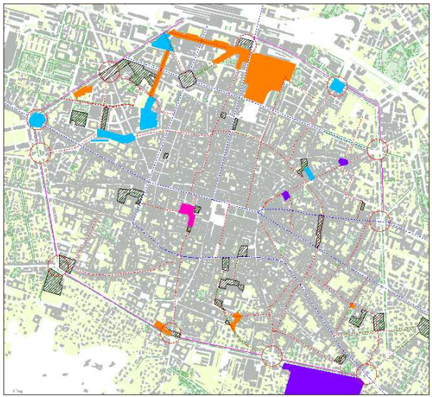Programma delle riqualificazioni di aree verdi fino al 2030 (immagine dal sito del Comune - in azzurro gli interventi