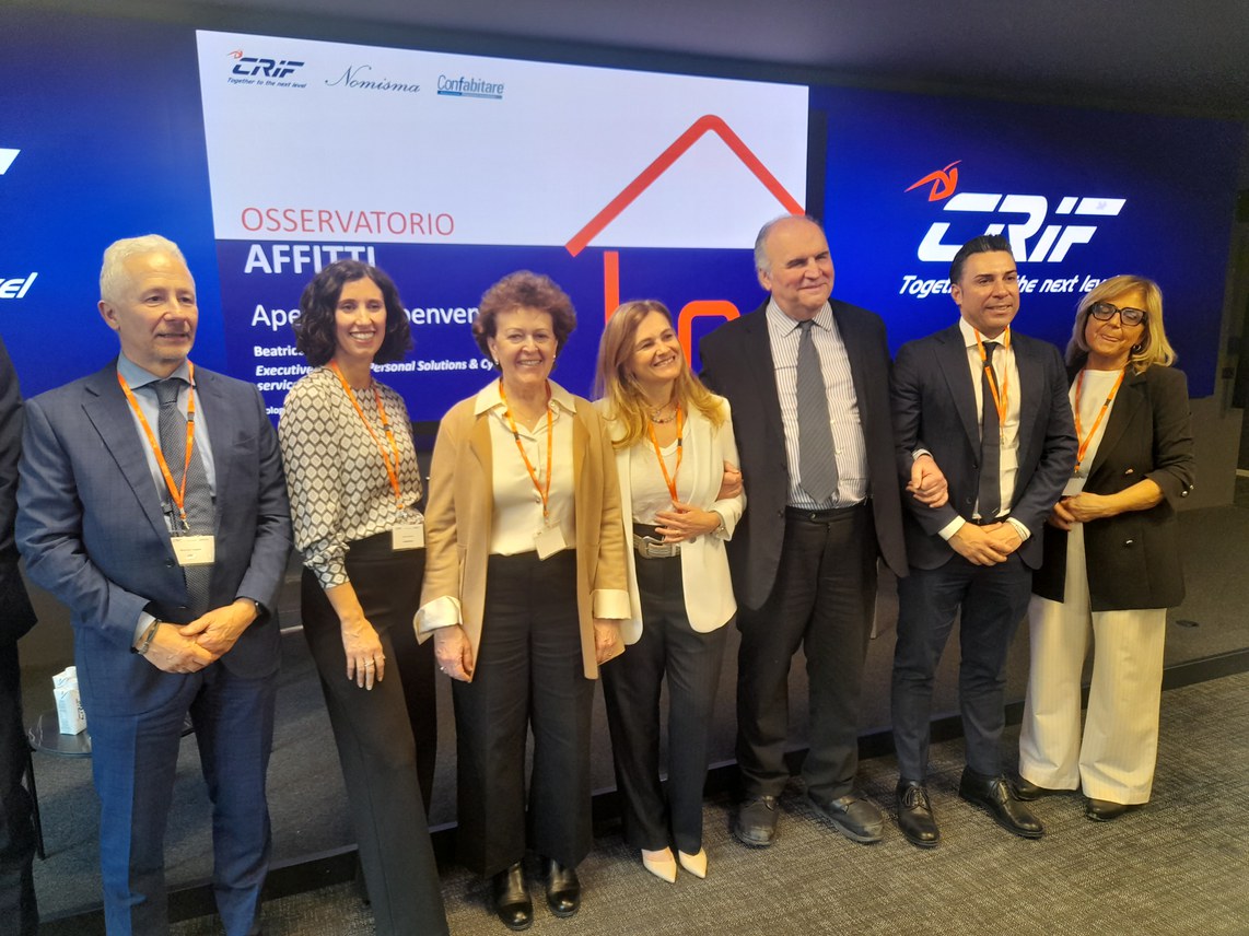 Al centro, Alberto Zanni di Confabitare e Beatrice Rubini di Crif all'Osservatorio Affitti 2025 (foto di Edoardo Cassanelli)